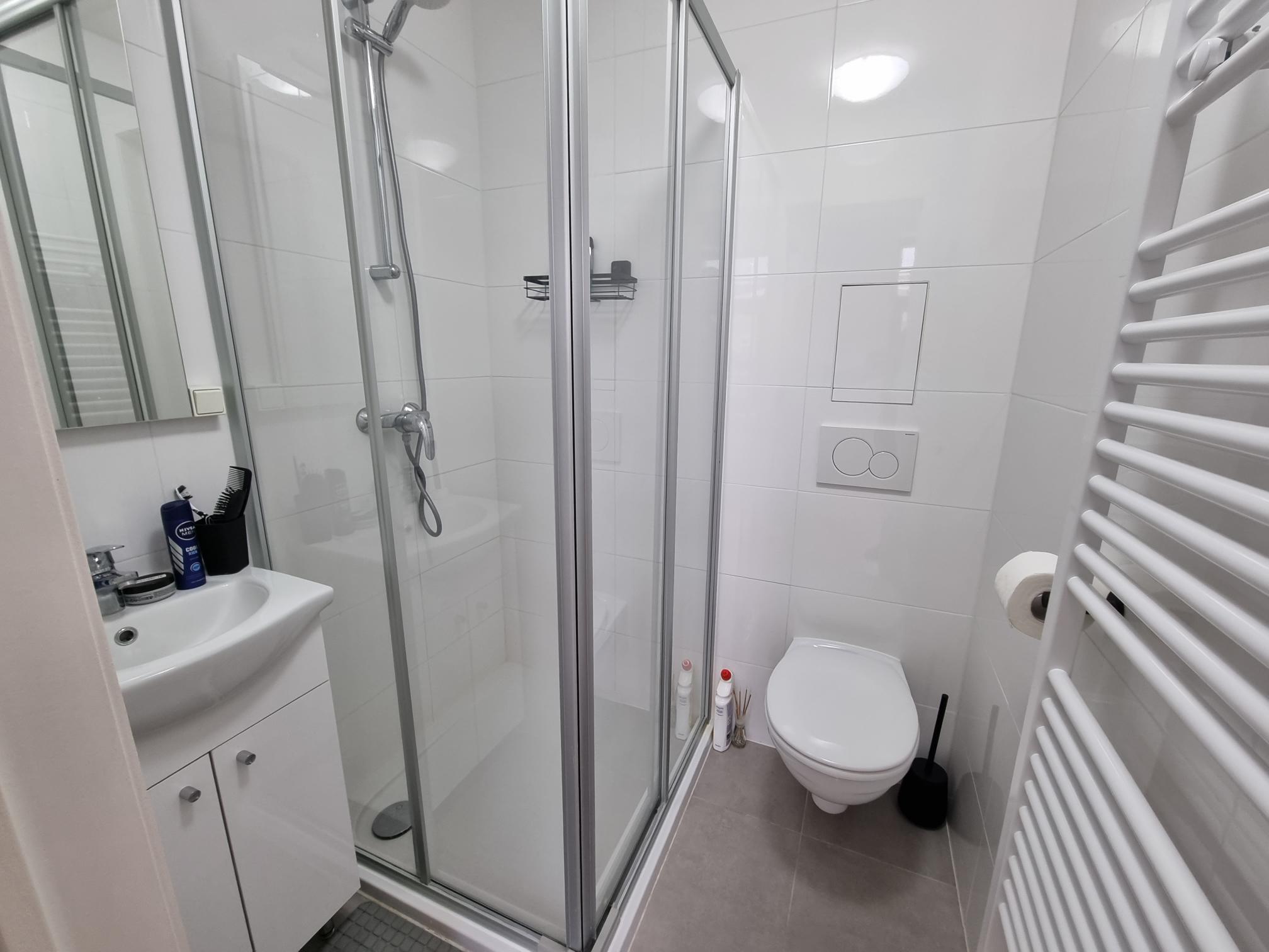 Alle studentenkamers hebben een eigen badkamer (douche, lavabo en toilet) als ook een frigo en microgolf op de kamer.